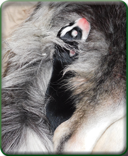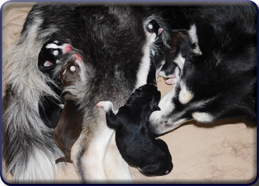 Only a few hours old Empress Maya and Damien Czar's puppies snuggle up in Empress Maya's fluffy tail.